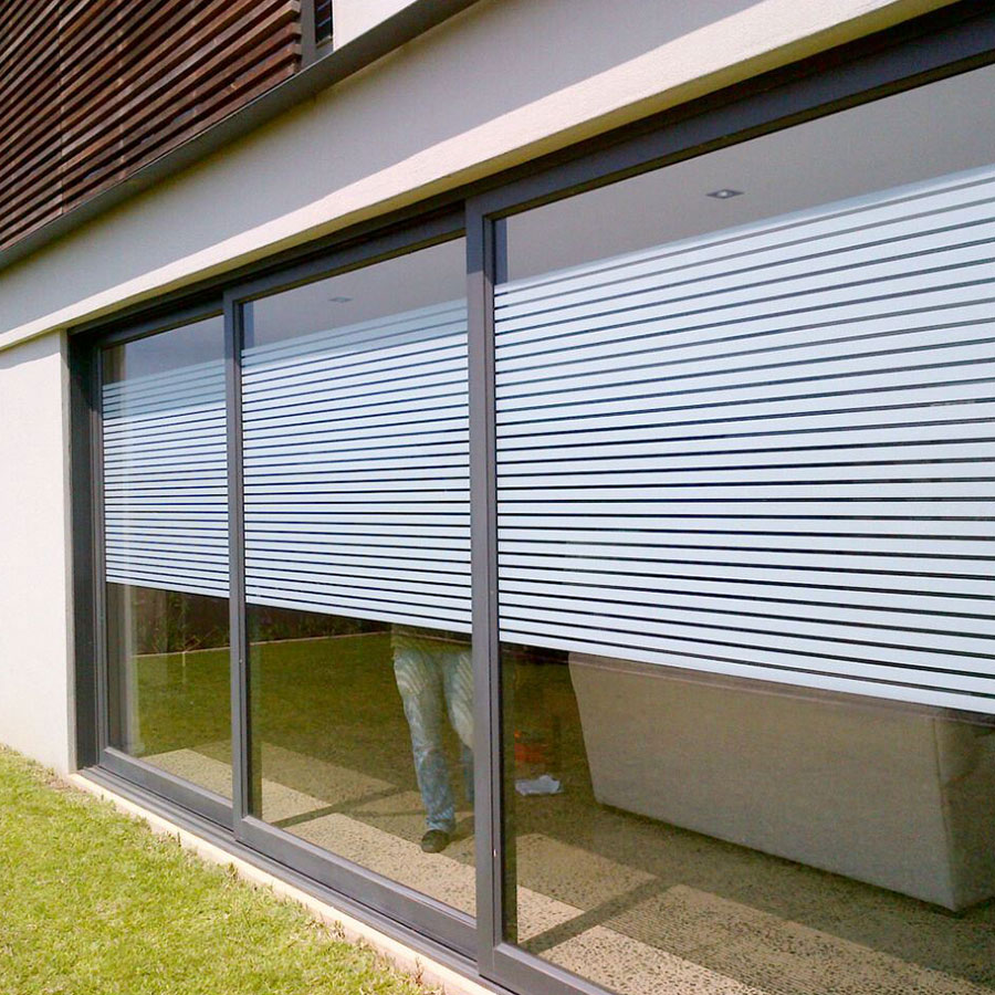 Glass Manifestation is necessary on glass of certain size in certain locations, with the primary function to make the glass visible. Large expanses of clear glass can often be difficult to detect, making them potentially hazardous. Glass Manifestation is placed at strategic locations on the glass, the contrast between the manifestation and the glazing making it easy to spot, preventing potential accidents.